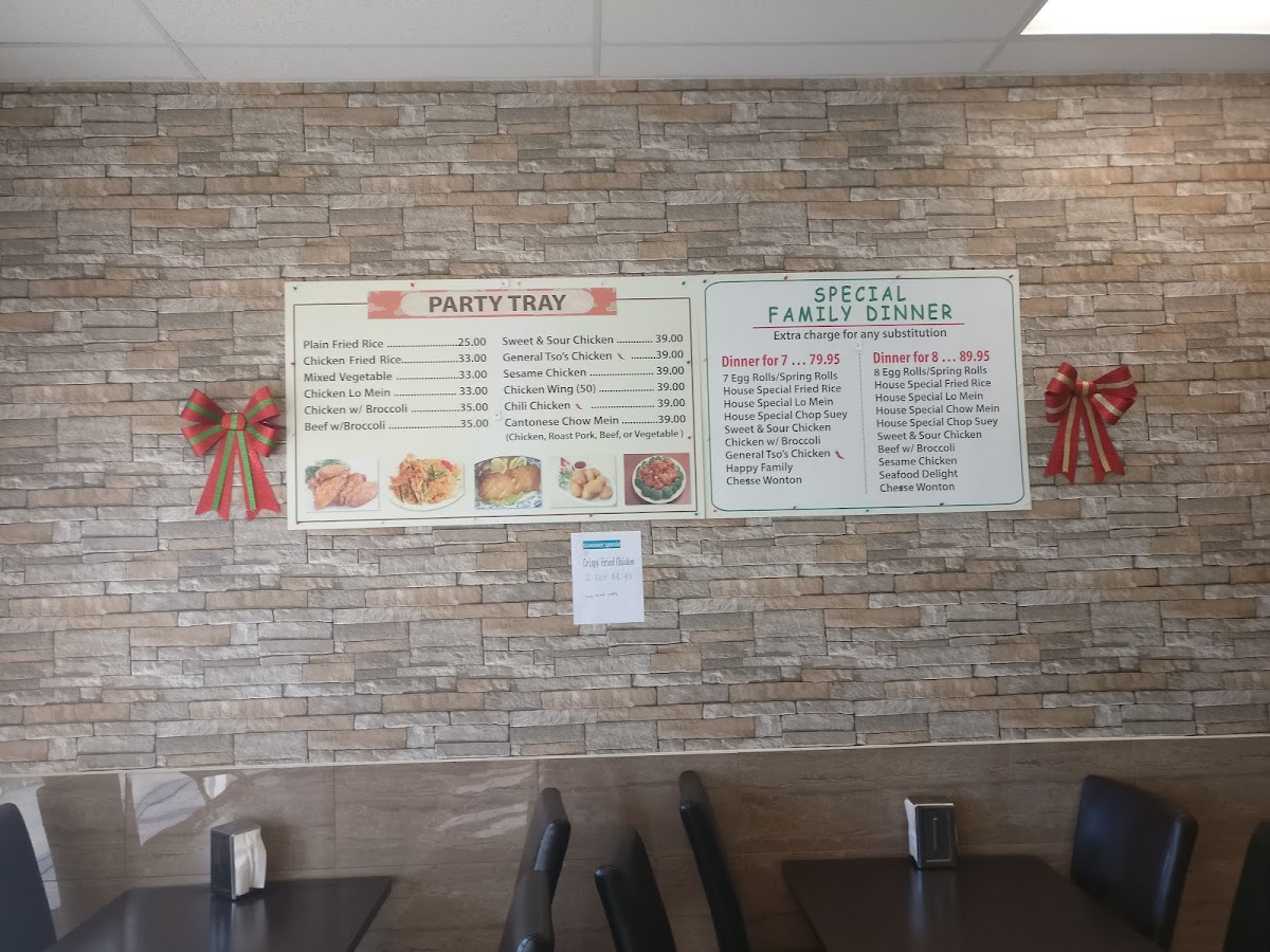 8egg rolls or 8spring rolls, house special fries rice, house special lomein, house special chowmein, house special chop Suey, sweet & sour chicken, beef w/broccoli, sesame chicken, seafood delight, chicken with veg and almond